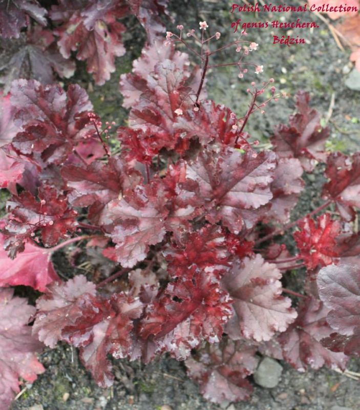 Rodzaj: Żurawka (Heuchera) Odmiana: Melting Fire Wymiary : odmiana tworząca kępy o szerokości 40 cm i wysokości 20 cm/50 cm z kwiatostanem. Kolorystyka: czerwono-bordowe liście. Kwiaty: białe. Kwitnienie: od maja do lipca. Warunki: stanowisko pół-cieniste/słoneczne .