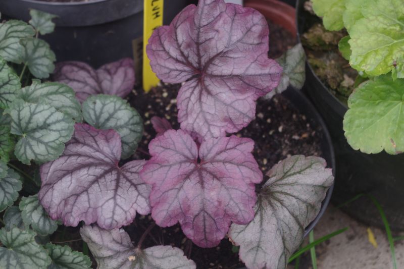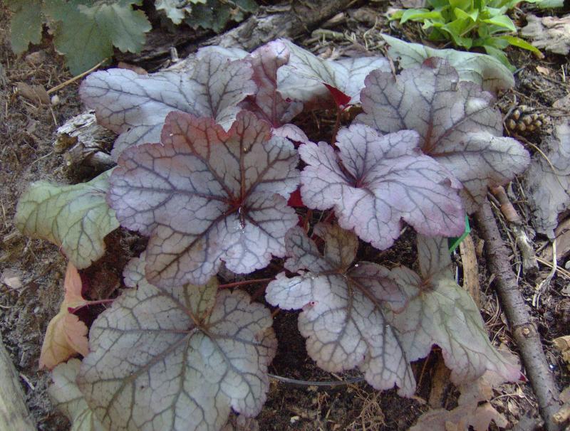 Rodzaj: Żurawka (Heuchera) Odmiana: Plum Royale Wymiary : odmiana tworząca kępy o szerokości 40 cm i wysokości 30 cm/70 cm z kwiatostanem. Kolorystyka: młode liście w kolorze śliwkowym z lekkim, metalicznymi przebłyskami, starsze z przewagą srebra. Kwiaty: białe. Kwitnienie: od maja do lipca. Warunki: stanowisko pół-cieniste/słoneczne.
