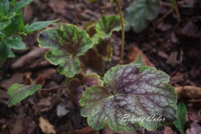 Rodzaj: Żurawka (Heuchera) Odmiana: Beauty Color Wymiary : tworzy kępy o szerokości 30 cm i wysokości 20 cm/40 cm z pędami kwiatowymi . Kolorystyka: kremowe kwiaty, liście przyjmują kolory od zielonego po prawie czerwony . Warunki: stanowisko pół-cieniste/słoneczne. Kwitnienie: czerwiec.