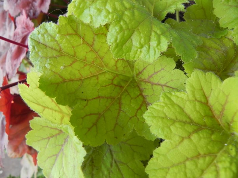 Kolorystyka: zielone liście z czerwonym żyłkowaniem.
