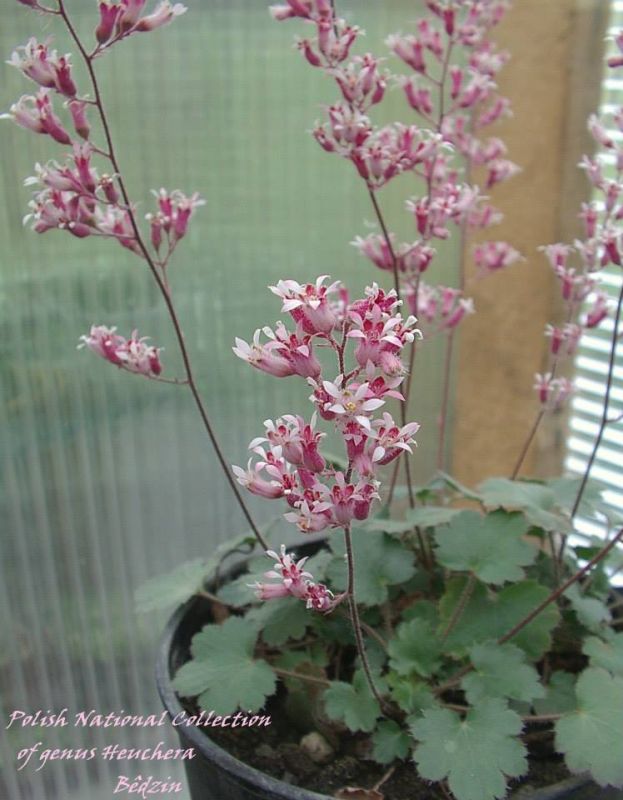 Heuchera 'Santa Rosa' to wyróżniona przez O. Rosendahla odmiana Heuchera hirsutissima z populacji rosnącej na górze Santa Rosa.