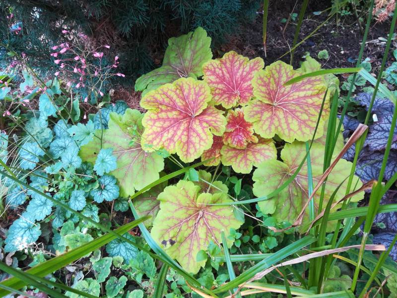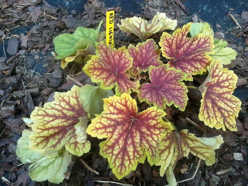 Kolorystyka: liście zielono-żółte z czerwonym żyłkowaniem.