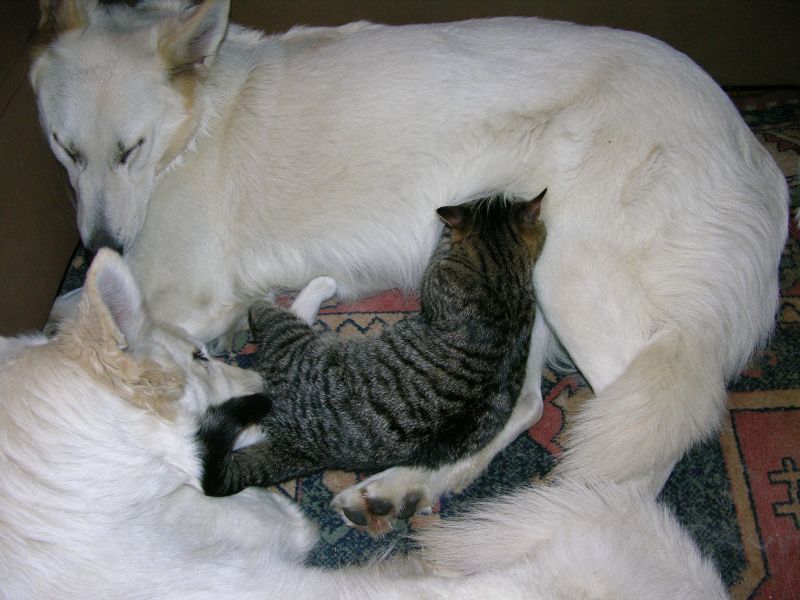 Dziś jest już trochę chimeryczną, głuchą i półślepą babcią, ale takie prawo wieku :-) Jako ciekawostkę tylko dodam, że Mina (jak i Mary) z upodobaniem karmiła koty :blink: Znalezionego przeze mnie prawie dwa lata temu Smarka karmiła przez ...ostatnie półtora roku zdziwko Skończyło się karmienie sterylką miesiąc temu, ale ani Minia ani Smark nie są z tego zadowoleni :lol: