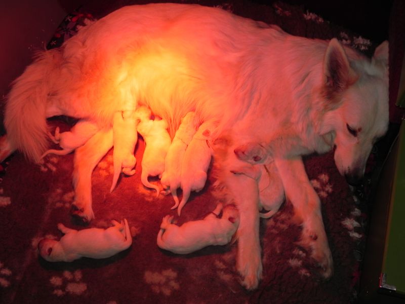 Jak to w hodowli bywa czasami na świat przychodzą szczenięta...To dla mnie zawsze, wciąż i nieustająco wielkie przeżycie i cud narodzin....Zawsze starannie się do tego niezwykłego momentu przygotowujemy, a i pozostałe psy czują, że najbliższe godziny będą inne...Przez te 13 lat urodziło się u nas 10 miotów, a w nich ponad 80 szczeniąt....Czas kiedy w hodowli przebywają maluchy to wielka radość, frajda i satysfakcja, ale także odpowiedzialność i masakryczna praca krecigl Pół biedy kiedy w miocie są 3-4 szczenięta, ale co kiedy jest ich 10-12? Od momentu narodzin do czasu wydania wszystkich malców nowym właścicielom nie mam ani jednej przespanej nocy (a nie zawsze wszystkie maluchy opuszczają hodowlę w wieku 8 tygodni), wielokrotnie w nocy trzeba wstawać i sprzątać, albowiem maluchy to jedna wielka fabryka siuśków itd. krecigl krecigl krecigl Ale cóż zrobić, taki ich "urok" ;-) Dość gadania...zapraszam do oglądania fascynującego procesu rozwoju szczeniąt :heart