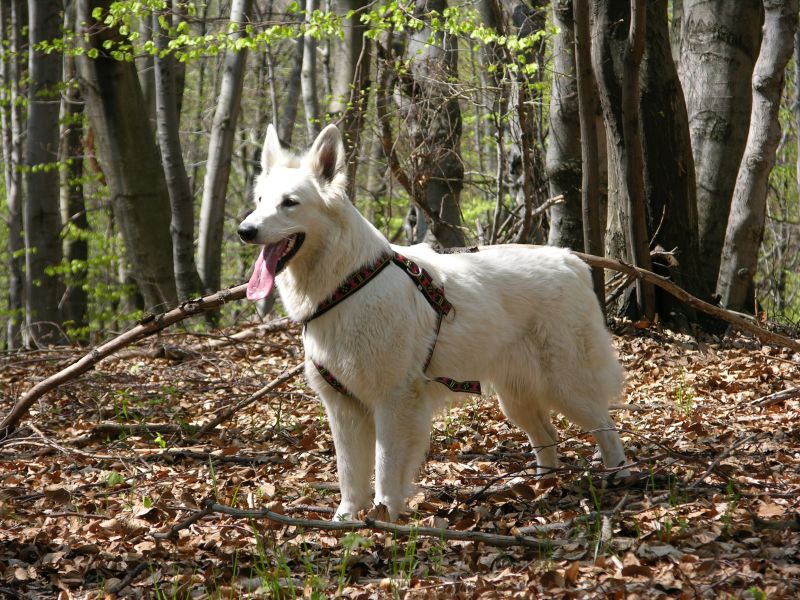 Roszka jest nietypowym białym owczarkiem, każdy kto ją zna wie, że więcej w zachowaniu ma z goldena niż owczarka ;-) kocha cały świat i wszystkich ludzi, każdemu z gości próbuje wejść (dosłownie) na kolana :blink: Miała u mnie jeden miot, jest mamą Fary i Fibi, ale o nich później, teraz jest już na emeryturze :-)