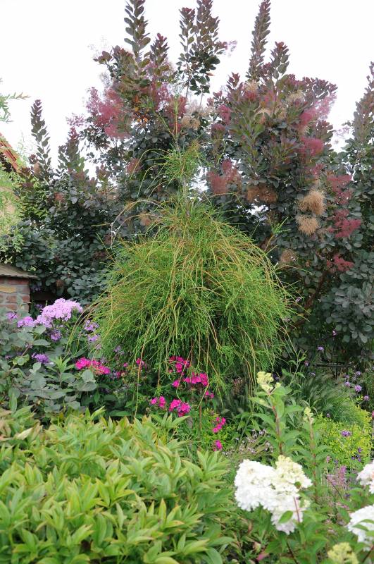 Korona gęsta, zwarta, regularnie stożkowata. Samotnie rosnące drzewa zachowują gałęzie do samej ziemi.