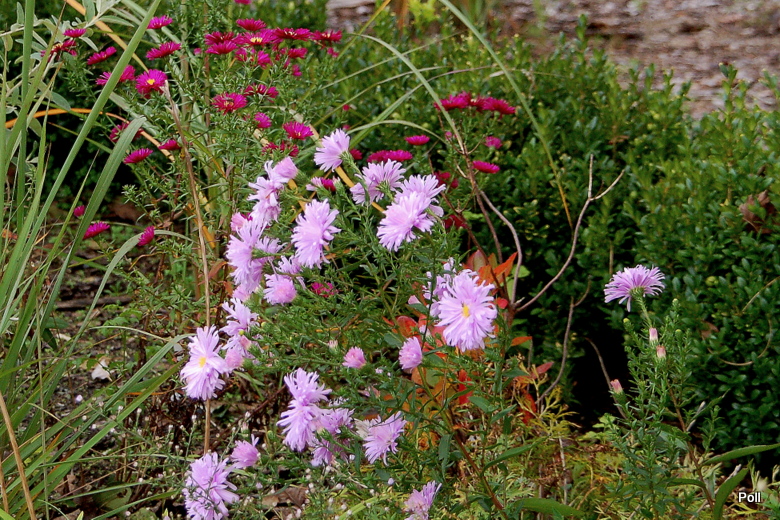 Gdy rozwija kwiaty, sprawia wrażenie krzaczka obsypanego jasnoróżowymi pomponikami. W miarę ich rozwijania, ukazuje się zółty środek, ale kwiaty pozostają na tyle masywne i ciężkie, że łodygi czasem potrafią się pokładac- zwłaszcza po deszczu. Podobno w ostatniej fazie kwitnienia staje się takim przeciętnym astrem, co widac na fotce w pierwszym poście.