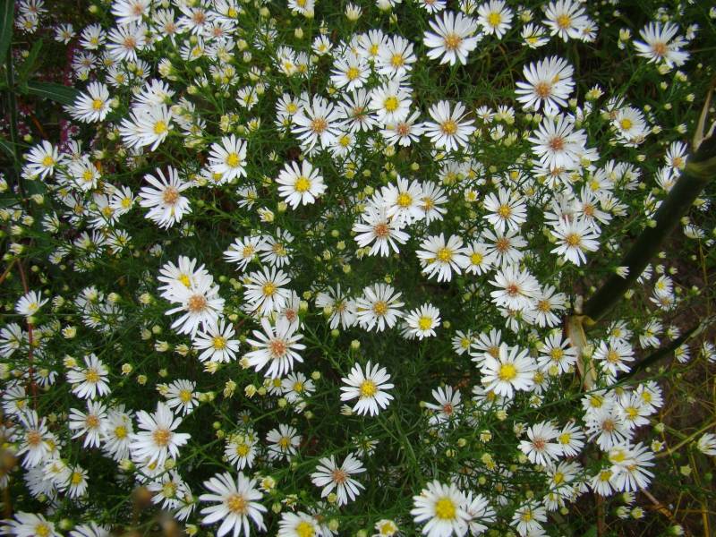 Anglicy mówią o nim 'Frost aster' , bo faktycznie, inne astry już w sporej części pobrązowiały a 'Monte Cassino' właśnie jest w pełni kwitnienia. W tym roku, mimo suszy, ma o wiele więcej kwiatów. Szkoda tylko, ze niedawne wichury nieco go przekrzywiły i spoczywa na boku.