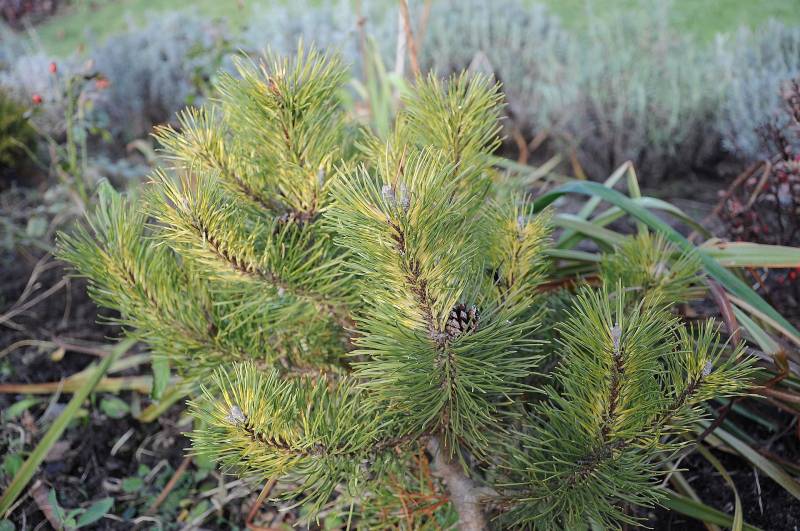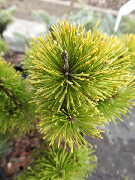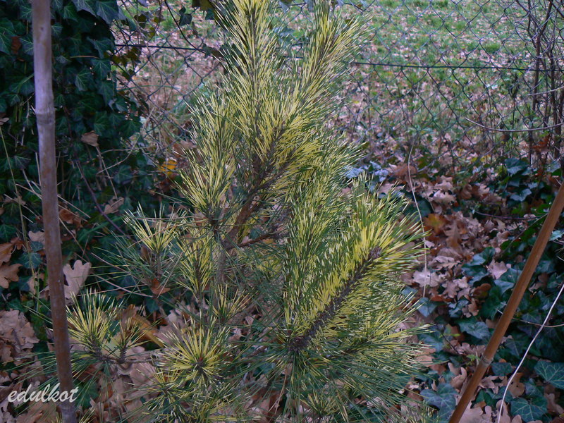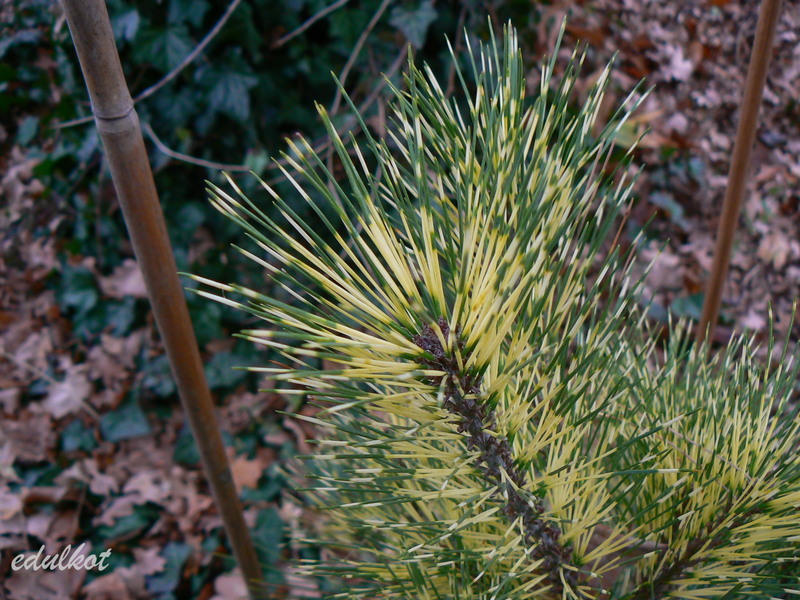 Miała być Pinus parviflora 'Ogon Janome' (sosna drobnokwiatowa 'Ogon Janome') ale jest chyba densiflora gęstokwiatowa „Oculus-draconis” albo parviflora ‘Shirome Janome’.