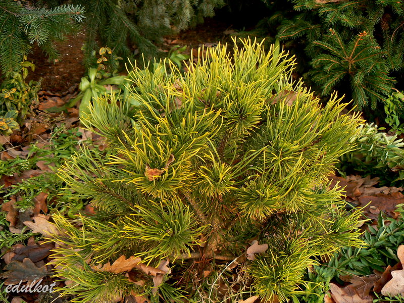 Miniaturowa odmiana wyselekcjonowana przez Michała Kałuzińskiego. Rośnie ok 3-4 cm na rok i bardzo długo utrzymuje żółte przebarwienie. Mój egzemplarz co roku ma także kolorowy drugi przyrost.