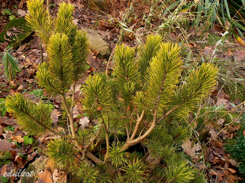 Pinus mugo 'Sunshine', wprawdzie tylko żółte paski na igłach, ale zawsze ;)