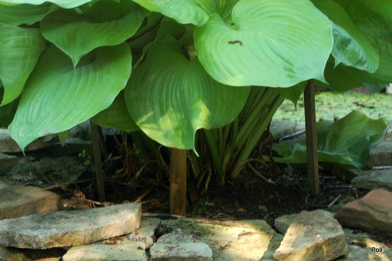 W tym roku, kły pojawiły się później, niż u innych host, ponieważ woda oczka chłodzi wysepkę. Gdy inne hosty cierpiały od przymrozków, ona była bezpieczna.