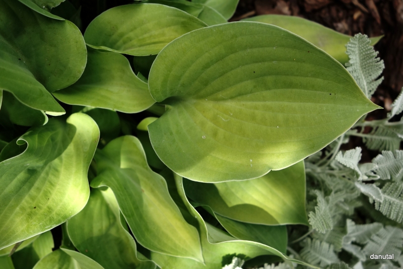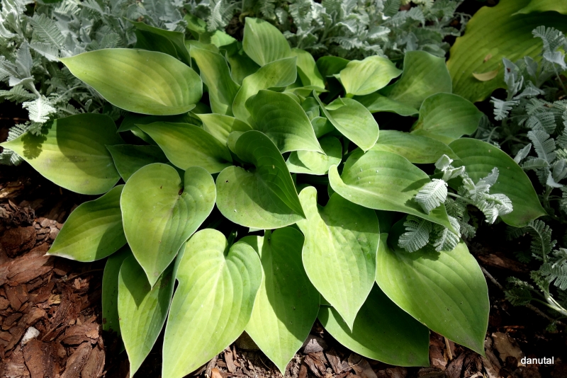Rozmiar:S/M wysokość 25-30cm Liście: zielone, w kształcie serca, w trakcie sezonu zmieniają barwę na złocistą Kwiaty: lawendowe w czerwcu/lipcu Zalecane stanowisko: od słońca do cienia