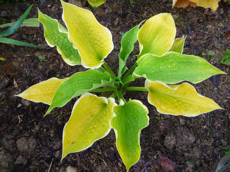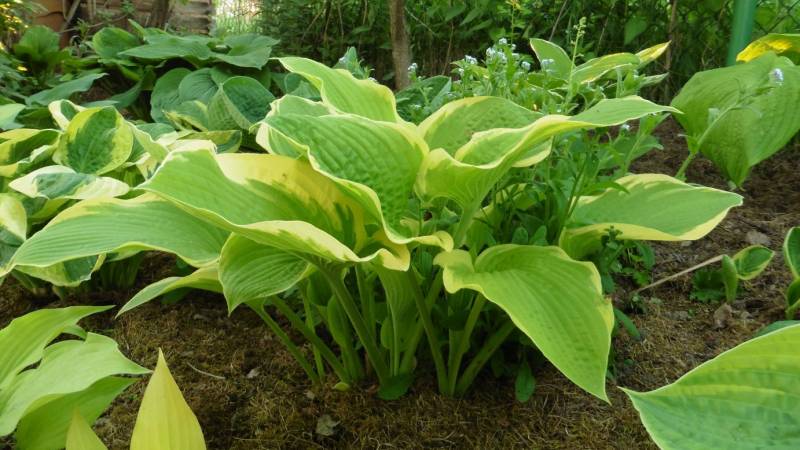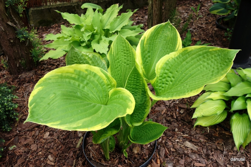 Krzyżówka host 'William Lachman' x 'Golden Waffles' (Kevin Vaughn 1982r.)
