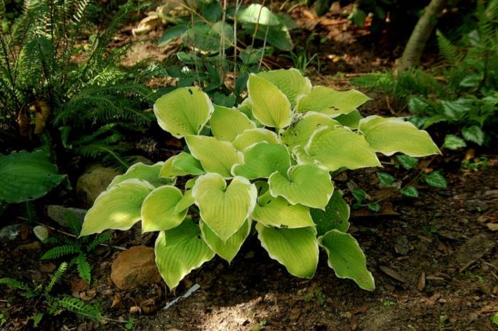 Śliczna, dość jaskrawa hosta, rozświetli każde ciemniejsze nasadzenia.