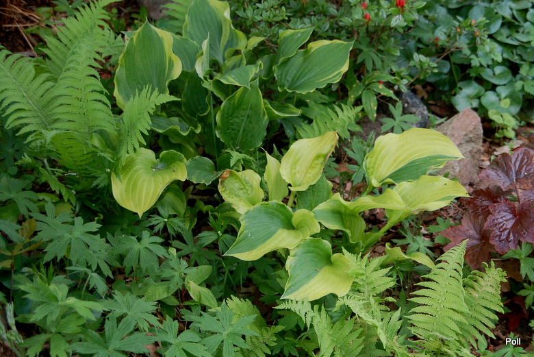 Torchlight nazywam 'oszukistką', bo bardzo zwodzi swoimi barwami - czasem wypuszcza cudnie wybarwione, np pół zielone, pół żółte, albo całkowicie żółte, ale gdy odzielimy taki odrost, ciesząc się, ze mamy fajny sporcik, w przyszłym sezonie znów wypuści normalne liście. :lol: Kilka razy oddzielałam takie kły i zawsze z jednakowym rezultatem rotfl U mnie w ogrodzie, to jedna z najstarszych host, kilkakrotnie dzielona i przesadzana.