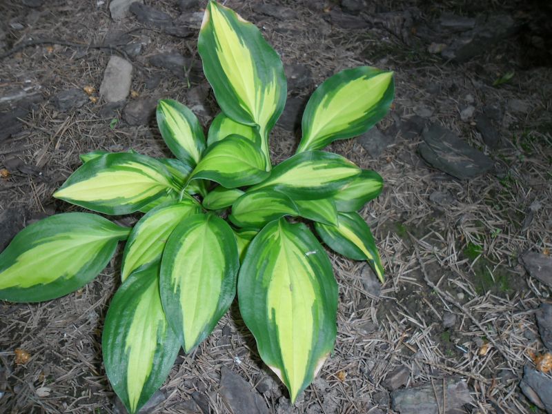 Ta hosta jakoś nie ma u mnie szczęścia.Ma przynajmniej pięć lat.Najpierw posadzona pod berberysem który mało ją nie zadusił,potem