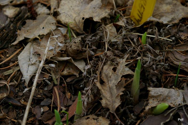malutkim kiełkiem.Na jesieni przesadzona na nowe hostowisko może w końcu jej spasuje.