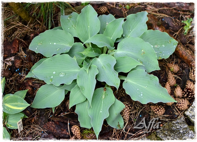 Hosta Titanium, nie osiągając olbrzymich rozmiarów na swoim starym miejscu, nieco się gubiła, więc została przeniesiona na początku tego sezonu na nieco bardziej eksponowane miejsce. Dodatkowo, swoim niebieskim kolorem miała ożywić trochę zbyt zielone nasadzenia na stoku paprociowym. Dobrze się na tym miejscu zaaklimatyzowała i choć jej wzrost nie jest duży, jest dobrze widoczna dzięki sporej szerokości kępy.
