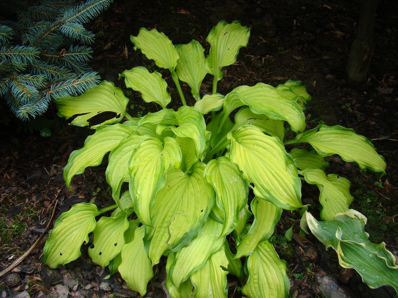 U mnie Hosta 'Emerald Ruff Cut', rośnie w dość cienistym miejscu.. W zeszłym roku podjadły ją ślimaki, więc w tym dostała niebieski granulat pod 'nogi'.