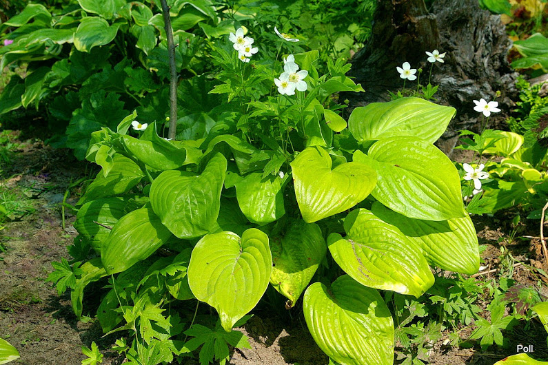 Miejsce suche ,ale daje radę . Kilka dni temu podcięłam gałęzie rosnącym tu iglakom , i teraz hosty bardziej narażone są na słońce . Ale akurat tu świeci tylko do południa .