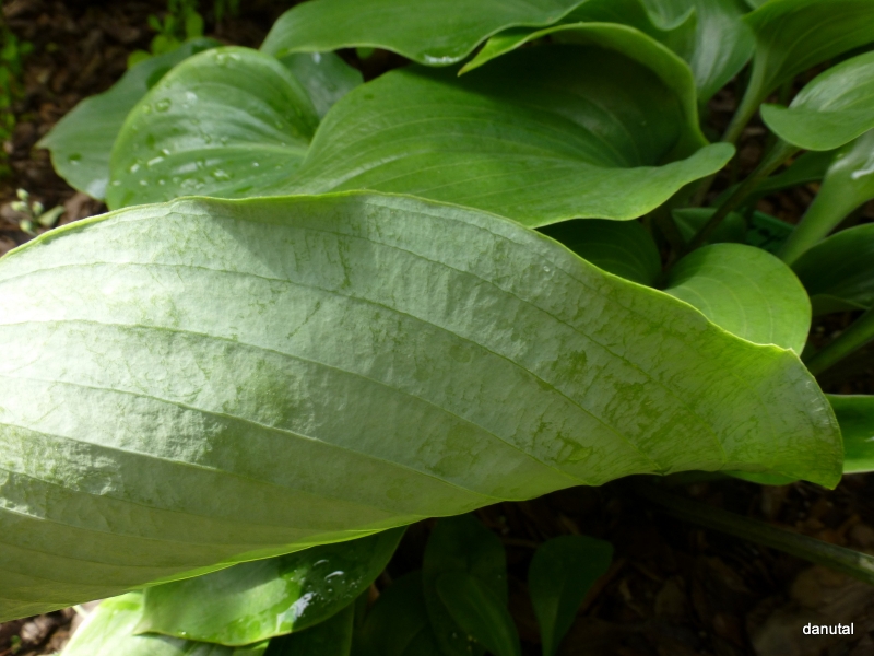 Hosta Urajiro Hachijo i wspomniane lśnienie, nawet pod cieniówką 75%