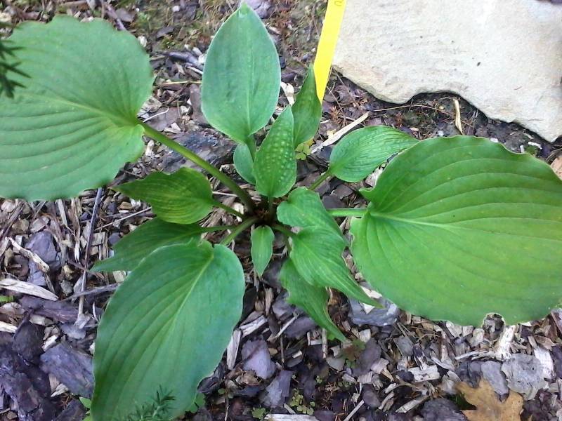 Rozmiar:M/L wysokość 45-55cm Liście: duże, sercowate; niebiesko-szaro-zielone z pofalowanym brzegiem i białym spodem Kwiaty: lawendowe w lipcu/sierpniu Zalecane stanowisko: najlepiej półcień, toleruje poranne słońce Uwagi: