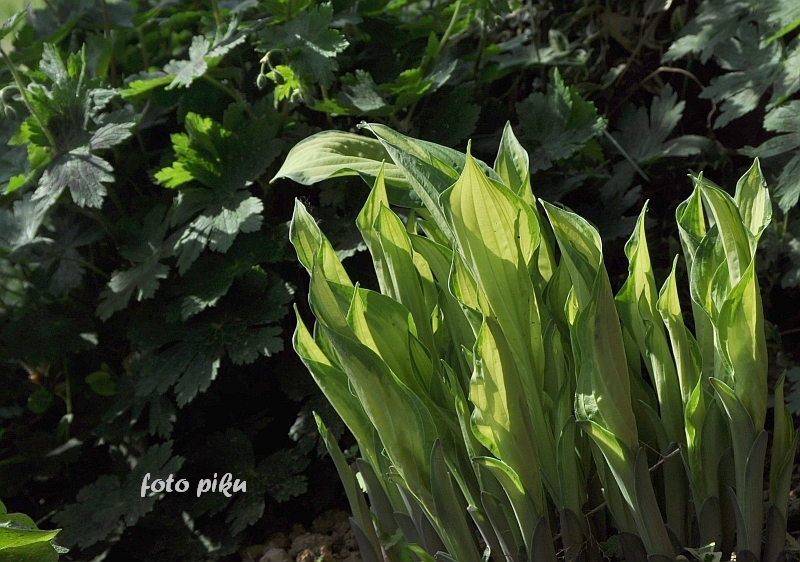 Hosta ventricosa) ma błyszczące obie strony liście, ale szczególnie dobrze widać to na jego backu (spodzie). Odwróć liść i zobacz, czy się błyszczy, czy jest matowy- jeśli matowy, to Albopicta, jesli błyszczący, to Aureomacculata.