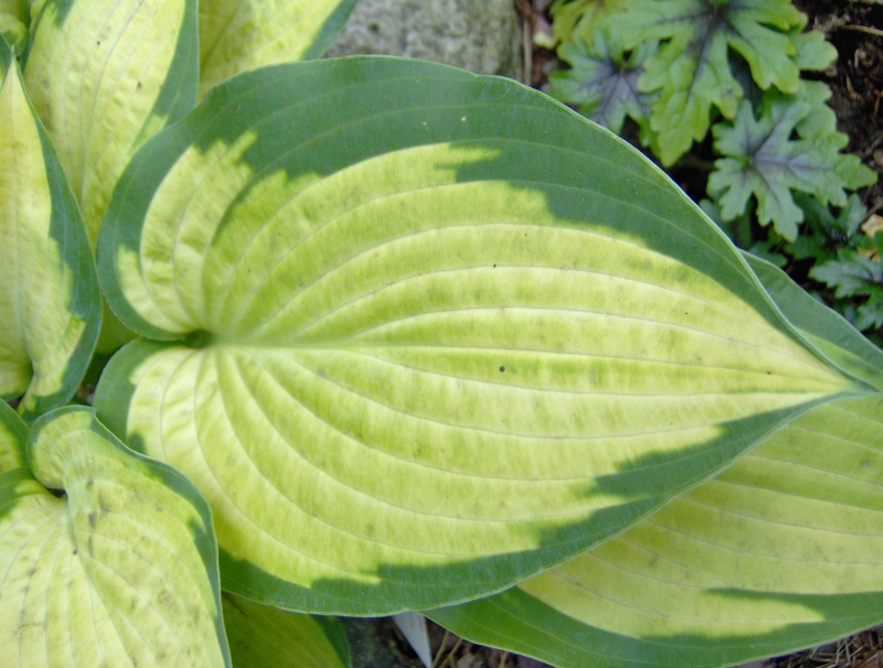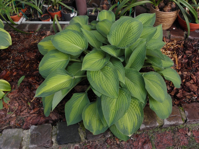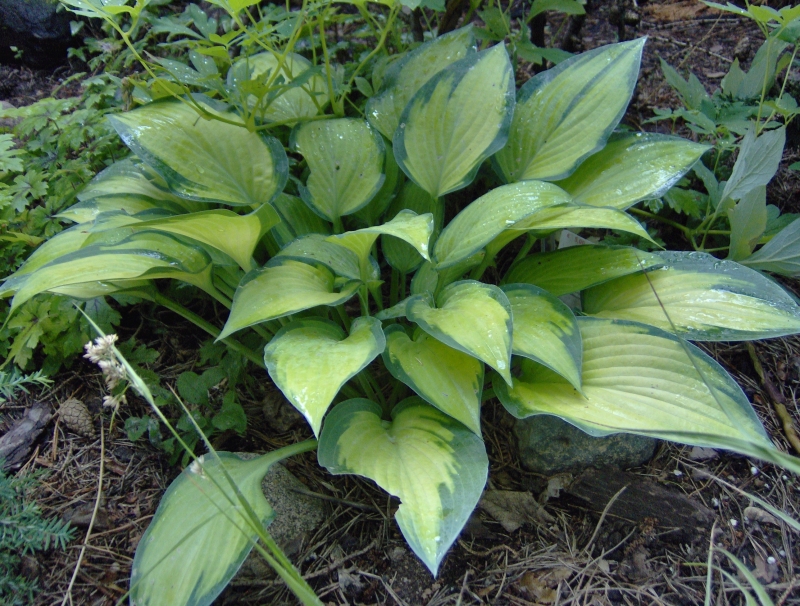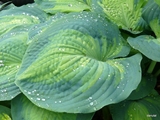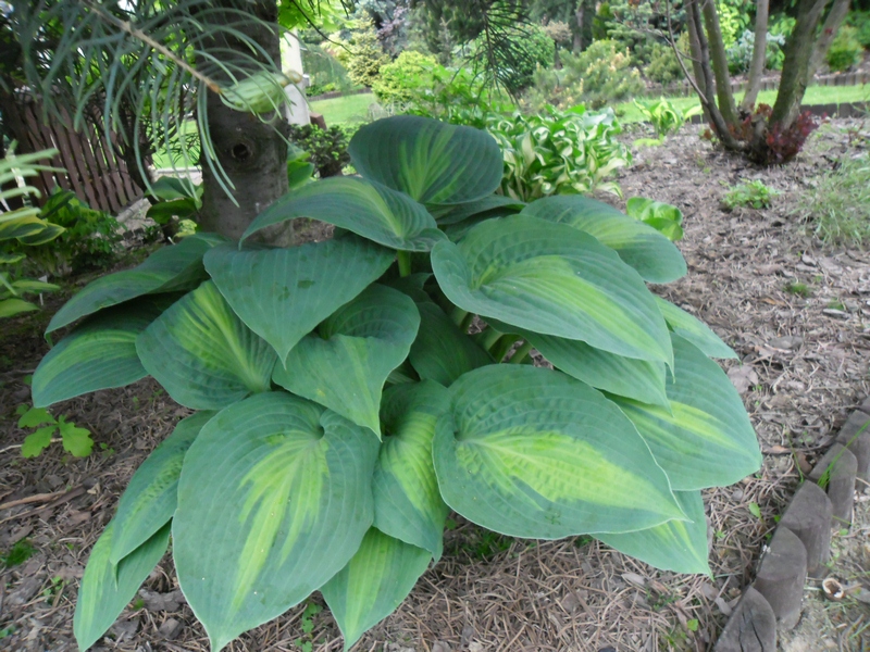Uwagi: bardzo ładna i intensywnie wybarwiona hosta, gdy rośnie na miejscu o większym zacienieniu kolor centrum liścia