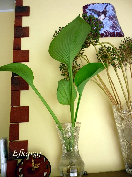 Rozluźniłam nieco to miejsce, bo hosty się bardzo rozrosły, właziły na siebie i w zasadzie żadnej dobrze nie było widać. Alex Summers ma ładny, wazowy pokrój i szkoda było ją zasłaniać innymi hostami.
