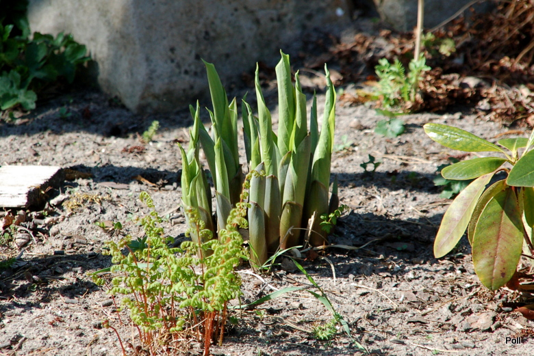 Winter Snow - jeden z moich egzemplarzy na słonecznym stanowisku. Drugi, na dzikiej części działki ma jeszcze całkowicie zwinięte kły.