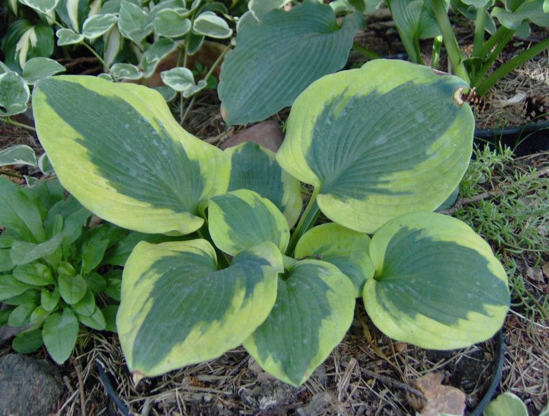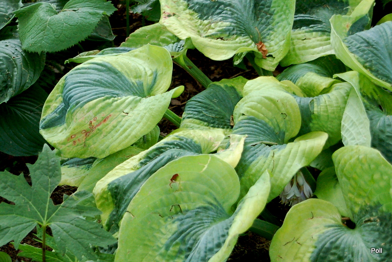 Faktycznie, powoli nabiera cech i faktycznie, potrafi się przypalić. Co prawda, nie jak Frances Williams, ale jednak... Dlatego trzeba jej wybrać dobrze stanowisko: chłodne i wilgotne. Trzeba tez uważać, aby nie rosła za jakimś kwitnącym krzewem, bo wyłapuje wszystkie opadające po przekwitnięciu płatki i potem trudno je usunąć (tak, jak spadź mszyc). Najlepiej ją posadzić za jakąś sporą hostą i nie zaglądać przez 3 lata