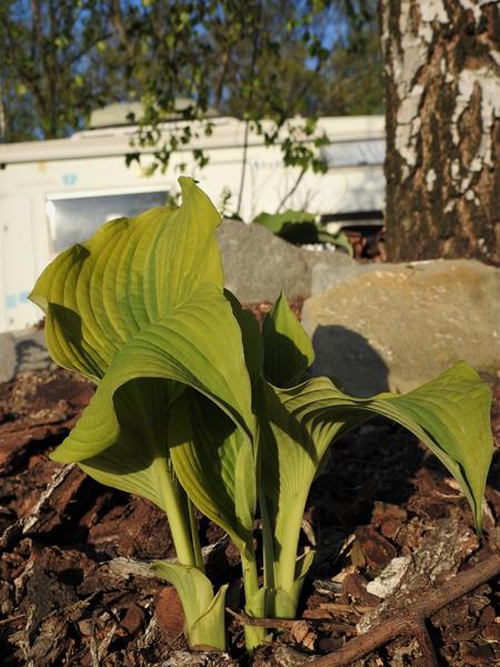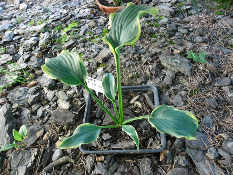 Mój The King, to hosta 6-letnia , na cienistym stanowisku latem, ale wiosną , gdy drzewa liściaste są gołe, na odkrytej patelni. Efekt jest taki, że co rok jest mocno przemrażany przez wiosenne przymrozki. :mur Powinnam go przenieść na chłodniejsze stanowisko, gdzie hosty później startują!