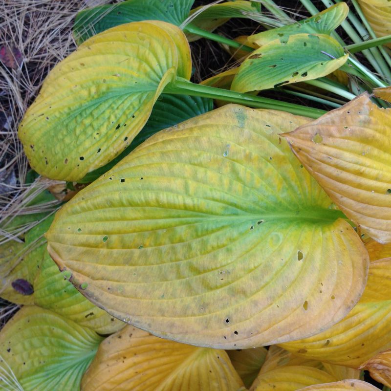 Warto wspomnieć też o wadzie, bo Hyacinthina, wśród licznych zalet, też ją ma. Otóż, tą wadą jest jest jej nieduża 'odporność na jesienne warunki , szczególnie na odsłoniętych i suchych stanowiskach. W zależności od pogody, ale przeważnie na początku października żółknie, podczas kiedy , rosnąca obok inne hosty trzymają się zupełnie nieźle. Szczęściem w nieszczęściu jest to, że starzeje się i zasypia z godnością, stopniowo przybierając kolor starego złota.