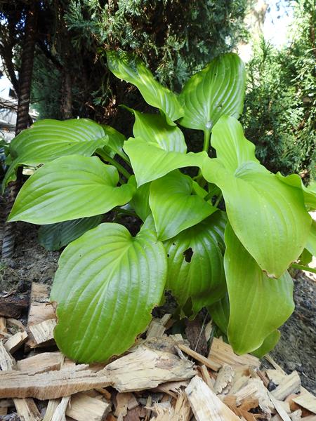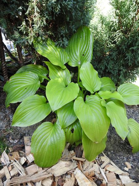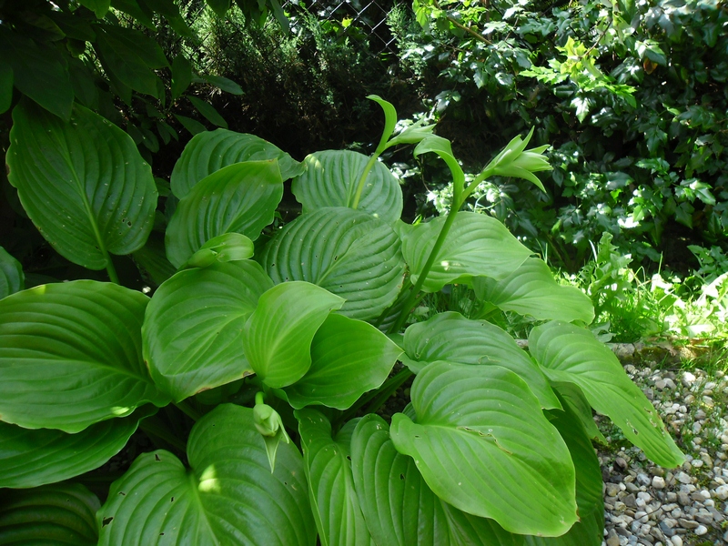 Kiedy inne hosty są w pełnym rozwoju (28 maja) Plantaginea, rosnąca w cieniu, wygląda właśnie tak. Kwitnie pod koniec września.