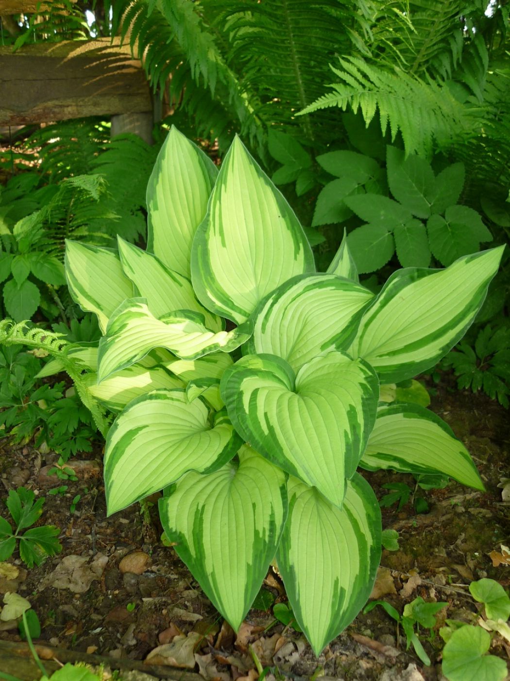 Moje hosty fortunei Albopicta rosną w cieniu pod lasem liściastym. Słońce dociera tutaj wieczorem, po godz. 18. Ziemia gliniasto-próchnicza.