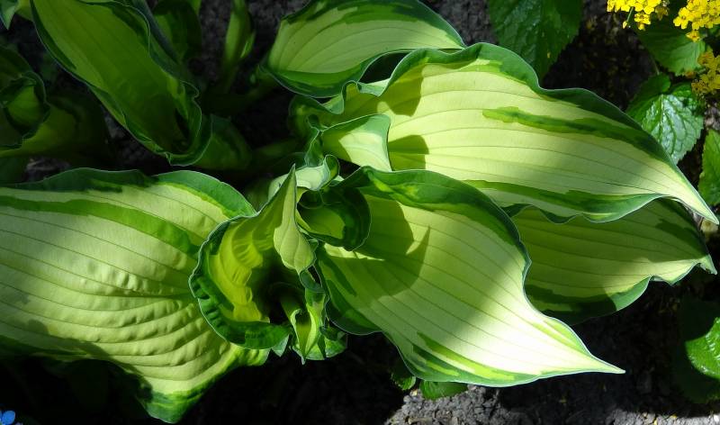 - Bardzo zjawiskowa hosta wiosną, ze względu na wybarwienie liści. Wraz ze wzrostem temperatury i nasłonecznienia dość szybko wybarwia się na jednolicie zielony kolor.