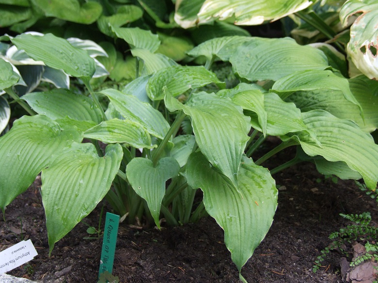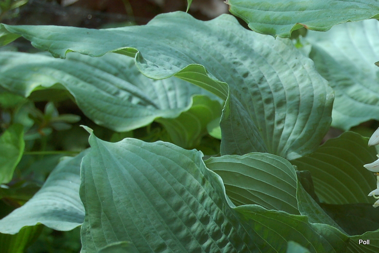 Liście: duże, dobrej substancji o sercowatym kształcie; niebieskozielone z mocno pofalowanym brzegiem i dobrze widocznym unerwieniem; back liścia przypudrowany, mocno wypukłe nerwy