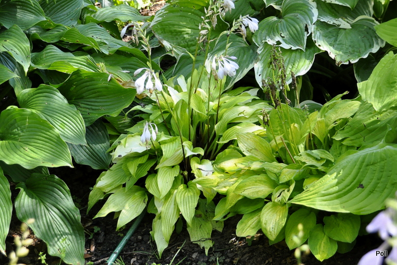 Jej kwiaty są bardzo charakterystyczne, osadzone na ulistnionych łodyżkach - wyglądają, jak zrywające się do lotu ptaki. Rośnie na półcienistym, często podlewanym stanowisku, osłonięta nieco przez większe sąsiadki. To one wzięły niemal cały impet majowych przymrozków na siebie, osłaniając tego malucha. Wszystkie hosty wokół mają straszliwe egzemy grzybowe.