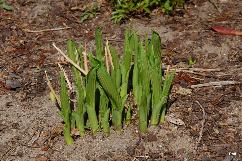 Liście: podłuzne, ostro zakończone, żywozielone o mocno zaznaczonych nerwach i falującym brzegu)