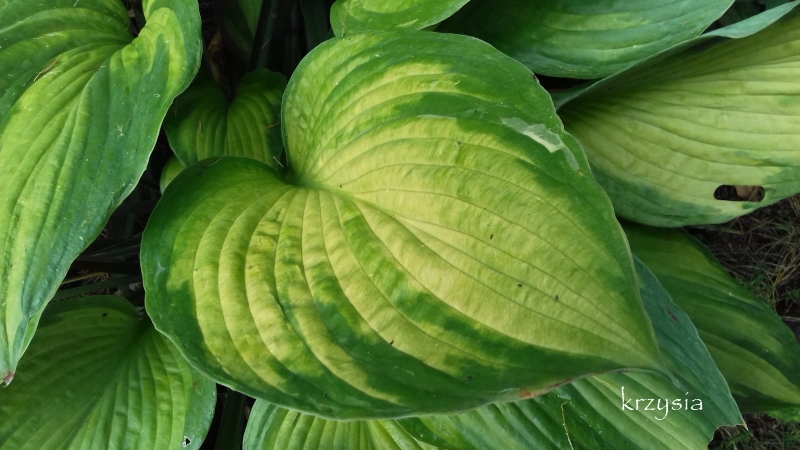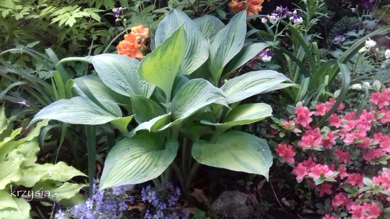 Nie bardzo mi się podobają hosty w tych kolorach, ale swoim tempem wzrostu, postawą , odpornością na ślimaki, prosionki i warunki zapracowała na jedną z ulubionych. Kupiona jesienią 2014 z 3 kłami, jeden ułamałam w trakcie sadzenia.
