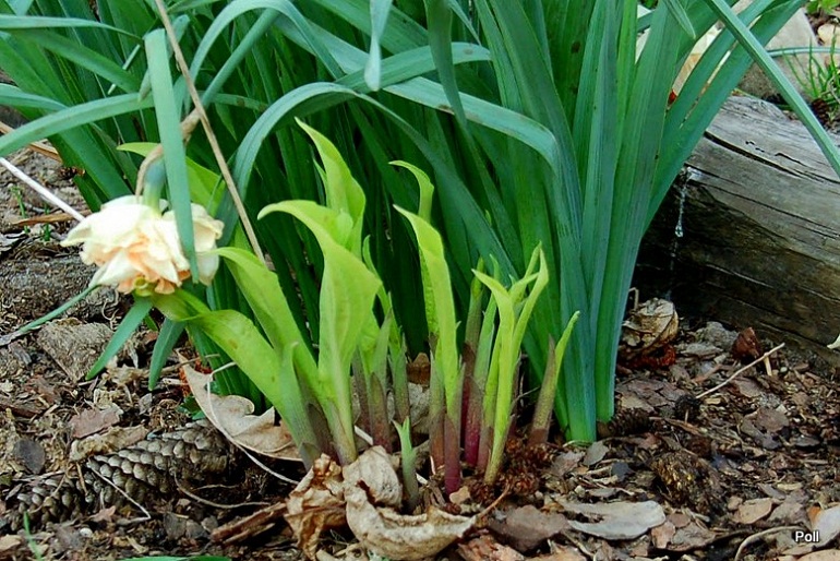 Hosta Tequila Sunrise rośnie w moim ogrodzie 5ty sezon. Za stanowisko ma półcieniste i stale wilgotne miejsce z przepuszczalną glebą. Jest to hosta dla lubiących nietuzinkowe, choć jednokolorowe rośliny. Jaskrawożółte, podłużne liście są falujące i tworzą ładne, choć nieco chaotyczne kępy. Czerwone nóżki widoczne są już w fazie kłów i nadają jej ciekawego kolorytu. Przyzwoicie się namnaża i nie miałam z nią innych problemów niż to, że lubi być podjadana przez ślimaki. Trzeba ją więc chronić, wysypując pod nogi np troszkę niebieskich granulek. Czasem, gdy ślimaków jest niewiele, wystarczy drobne, kłujące igliwie i szyszki, albo wkopane w ziemię pułapki piwne... Do kompletu polecam siewkę tej hosty, nowe intro Patricka Butaye z 2014 roku,