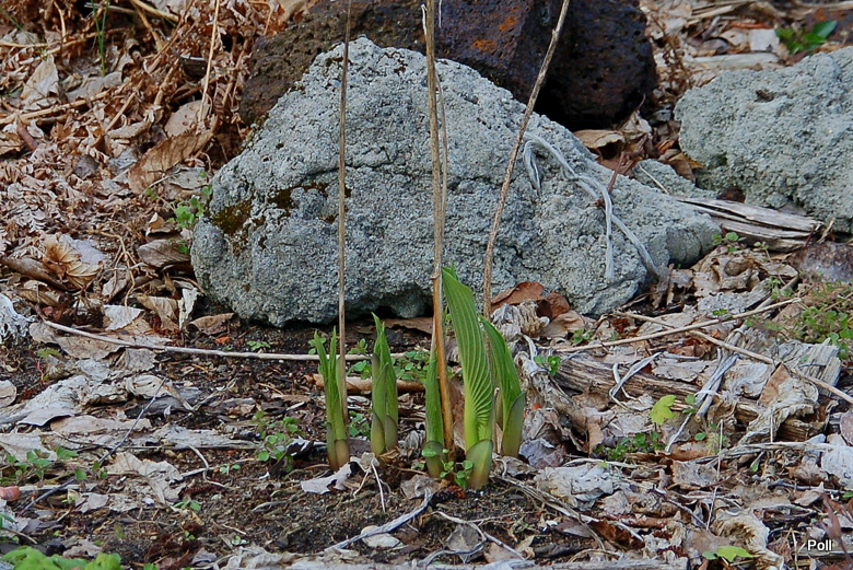 Dwie kępy hosty Lake Superior, choć mocno rozwinięte, uniknęły zniszczeń od przymrozków. Rozwijają skrzydła bez przeszkód, pominąwszy ochronę przed ślimakami.