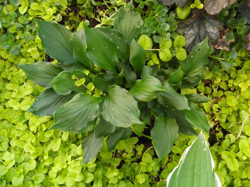 - hosta zachwycająca kolorem i pokrojem kępy ( liście wznoszą się niemal pionowo w górę), szkoda,że nie jest większa
