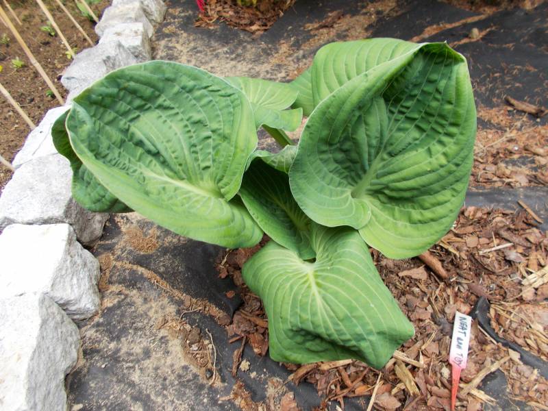 Rozmiar: ML wysokość 50-60cm Liście: ciemno zielone, pofałdowane, okrągłe, każdy liść inny. Kwiaty: białe,kwiatną w lipcu Zalecane stanowisko: od słońca do cienia Uwagi: