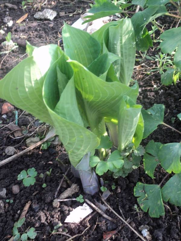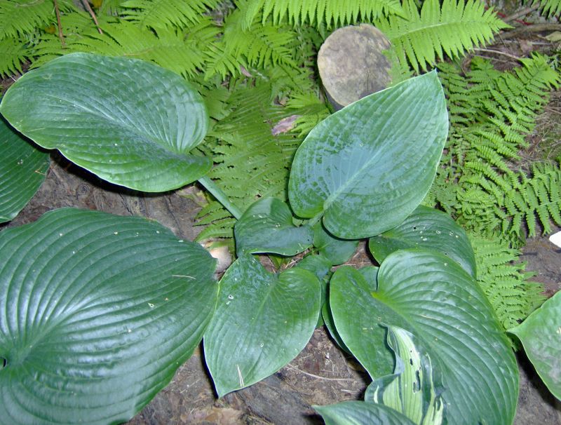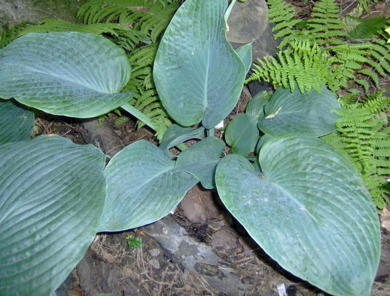 Rozmiar: XL wysokość 100-120cm. Liście: duże, niebiesko zielone, eliptyczne, z wyraźnym żyłkowaniem Kwiaty: ładne, blado lawendowe, Zalecane stanowisko: półcieniste do słonecznego, Uwagi: