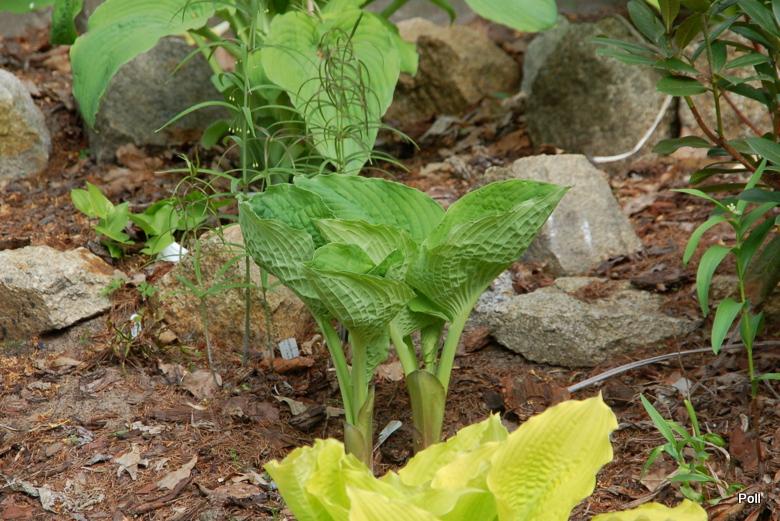 Jesienią, wraz z innymi hostami Olgi Petryszyn trafiła na nowe, żyzne stanowisko, gdzie nie będzie rosła w ścisku. Razem z nią przeniosło się trochę zawilców i konwalijek dwulistnych.