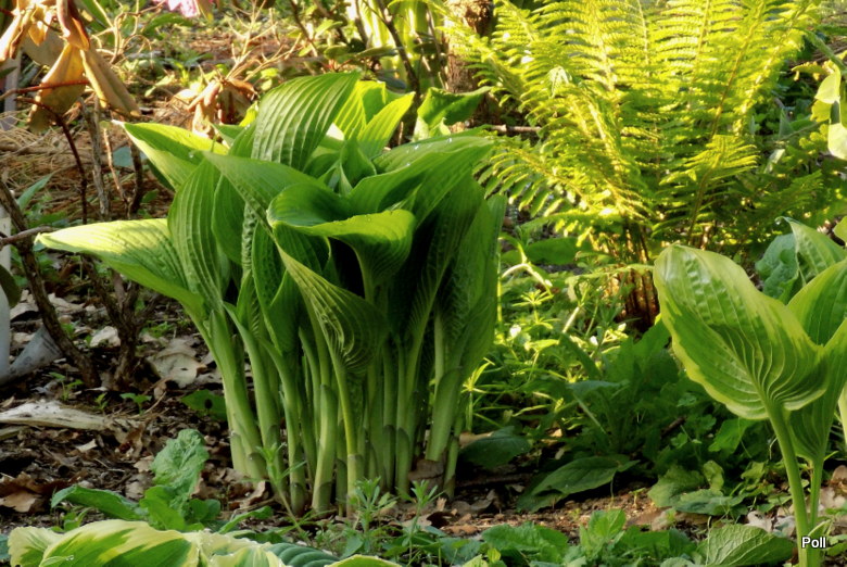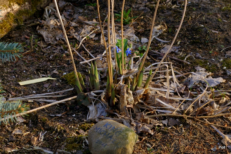 Może nieco zbyt wczesnie, jak na moj gust, ale hosta King Michael pokazała kły nad ziemią. U mnie 7-my sezon (od 2011 roku) , sprowadzona z Begii, jako mała sadzonka z in vitro. Powoli się rozkręca i dojrzewa, podobnie, jak hosta od której pochodzi, czyli montana f. macrophylla.