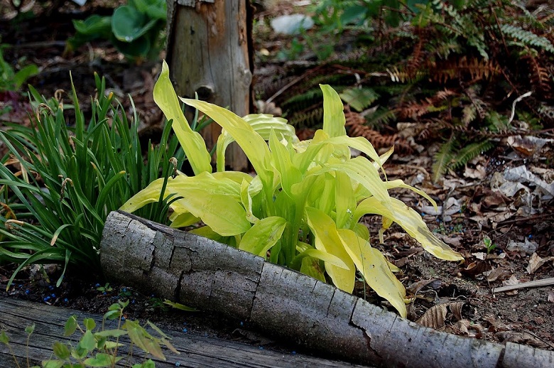 Hosta Chiquita - jaskrawożółte, strzeliste kły (fot.13.04.2018r)