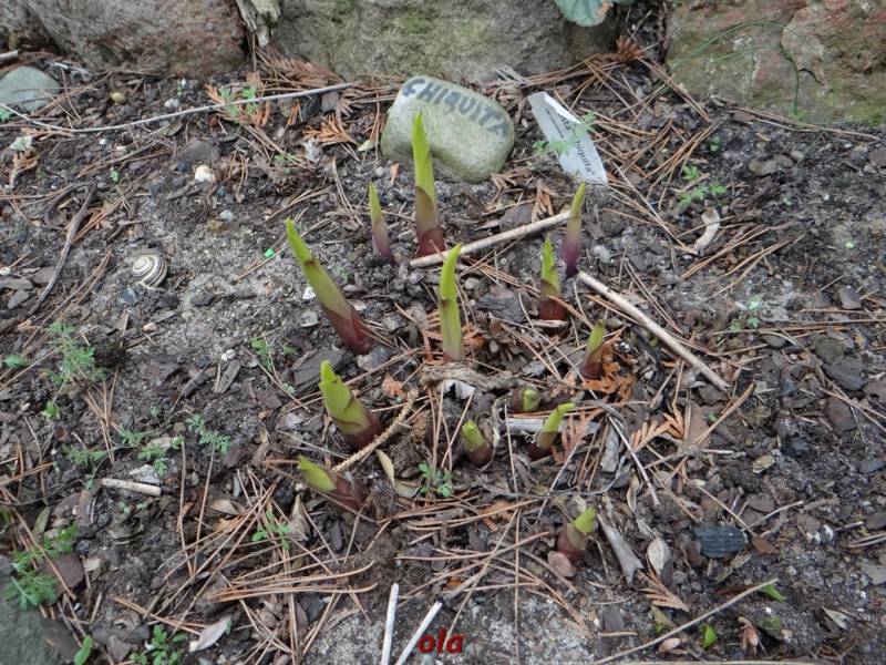 Chiquita rozpoczeła już sezon 2019- nad powierzchnią gruntu pokazały się najpierw kły malinowego koloru a teraz już widać żółty kolor przyszłych liści